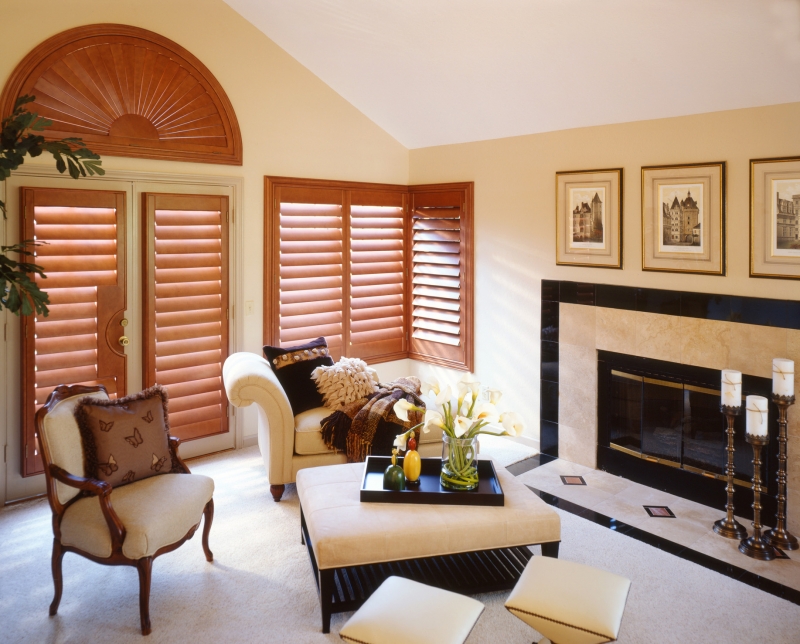 Specialty shapes—such as arches, eyebrows, and circles—are available, as are the standard options of fixed or movable louvers, raised panels, and fabric material inserts. We also offer the convenience of motorization for hard-to-reach or high windows.